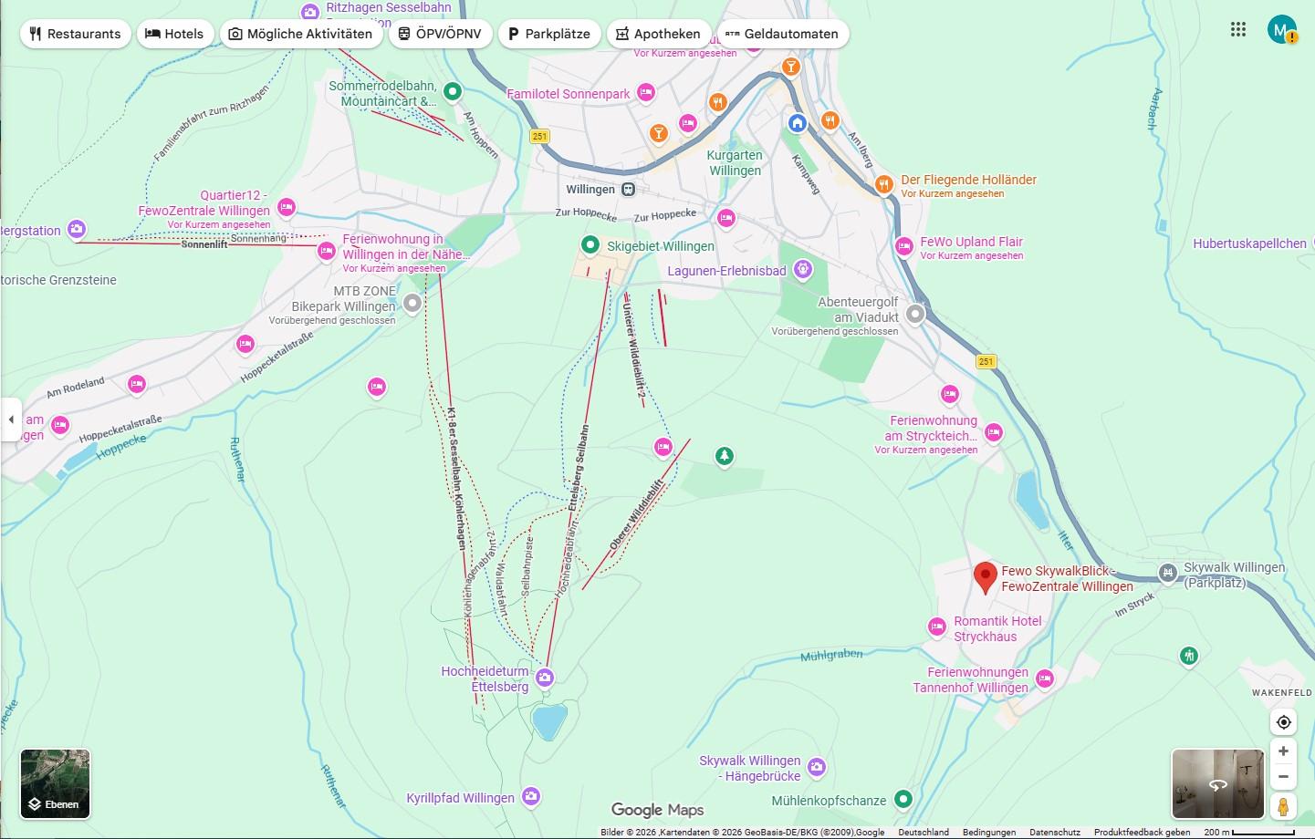Fewo Skywalkblick**** - schöner offener Wohn/Essbereich Fewo Skywalkblick**** - Aussenansicht Haus TOP! - Fewo mit MeineCardPlus gelegen im Strycktal - Willingens schönste Ortslage Ihre Fewo-Vermietungsagentur in Willingen/Sauerland Fewo Skywalkblick**** - Wohnzimmer mit 2.1 Homecinema und DVD-Auswahl Fewo Skywalkblick**** - Komfort im romantischem Landhausstil Fewo Skywalkblick**** - Komfort im romantischem Landhausstil Fewo Skywalkblick**** - Blick auf den Balkon Fewo Skywalkblick**** - Balkon mit Liegestühlen und E-Grill Fewo Skywalkblick**** - Aussicht vom Balkon ins 'Paradies' Fewo Skywalkblick**** - Balkonblick zum 2023 neuerbauten Skywalk Fewo Skywalkblick**** - Zoom zum neuen Skywalk Fewo Skywalkblick**** - Panoramablick Fewo Skywalkblick**** - offene Küche mit Essbereich Fewo Skywalkblick**** - Landhausküche mit Top-Ausstattung Fewo Skywalkblick**** - Küche im Detail Fewo Skywalkblick**** - Küche mit Skaywalk-Blick Fewo Skywalkblick**** - Schlafzimmer mit Sitzgruppe Fewo Skywalkblick**** - Schlafzimmer mit TV Fewo Skywalkblick**** - modernes Duschbad mit Duschsitz Fewo Skywalkblick**** - Grundriss Fewo Skywalkblick**** - 2 ATB-Fahrräder kostenlos für unsere Gäste Fewo Skywalkblick**** im Strycktal (Lage siehe Pfeil) - rechts Stryckpark Fewo Skywalkblick**** - im Strycktal Fewo Skywalkblick (Haus links) Fewo Solino (Haus rechts) Fewo Skywalkblick im Winter (oberer Balkon) Haus am Doracker im Winter Fewo Skywalkblick**** - Winterpanorama (für Vollansicht auf Bild klicken) FeWo Skywalkblick - Lage auf Google Maps MeineCardPlus inkl. = Urlaub ohne Nebenkosten! viele Freizeiteinrichtungen wie Seilbahn, Lagunenbad, Eishalle kostenlos für unsere Gäste Ladenbüro Briloner Str. 7 Willingen - heilklimatischer Vier-Jahreszeiten Urlaubsort Willingen - Nr.1 Wanderregion im Sauerland Ettelsberg-Seilbahn mit Turm – höchster Aussichtspunkt im Sauerland Flutlicht-Skigebiet Willingen Willingen - einer der Top5 Mittelgebirgs-Wintersportorte Diemelsee - nur 12km von Willingen entfernt Nationalpark Edersee/Kellerwald - nur 35km von Willingen entfernt