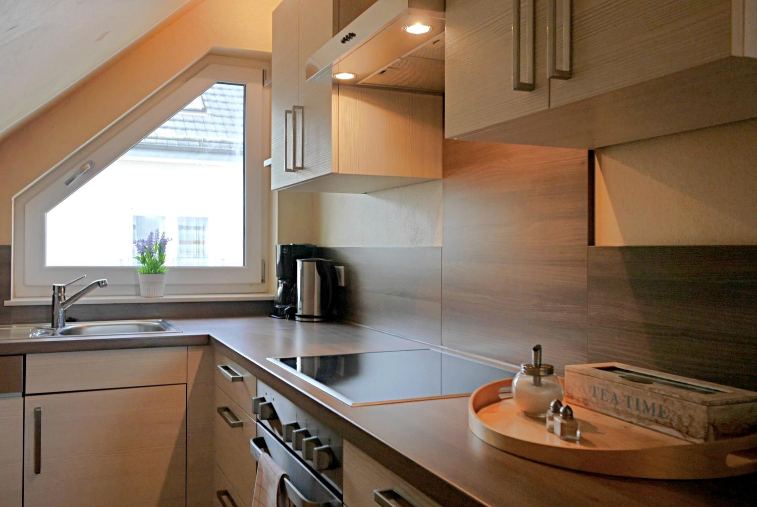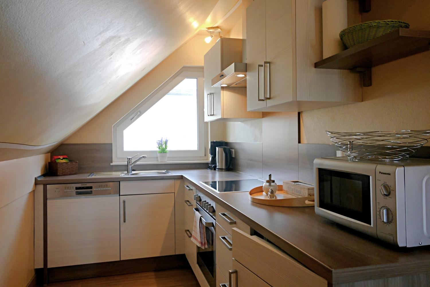 - offene Küche mit Geschirrspüler und guter Ausstattung.