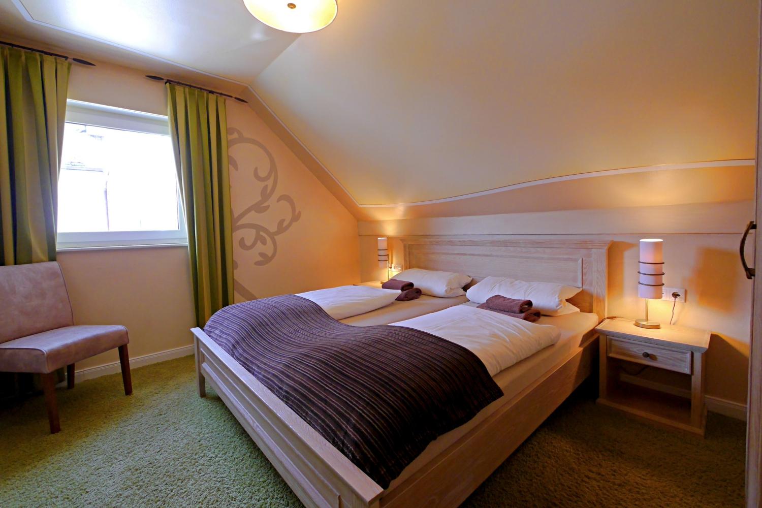 - Spitzboden mit Doppelbett (keine Stehhöhe)