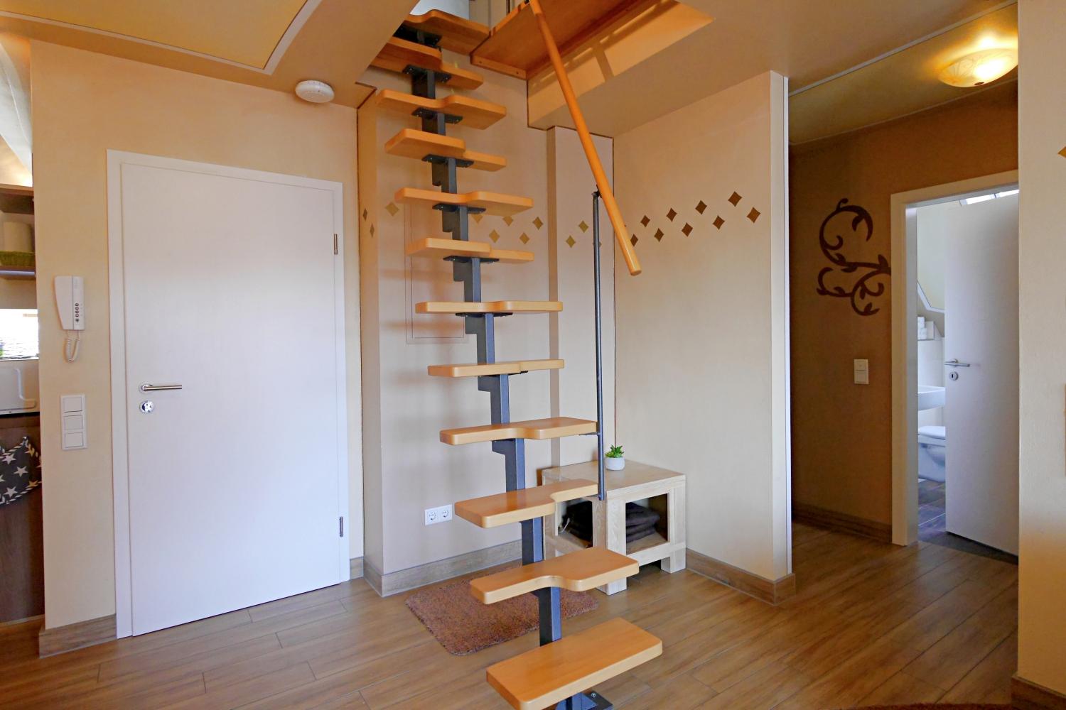 - Schlafspitzboden mit Doppelbett 160x200 (Steiltreppe, keine Stehhöhe auf dem Spitzboden)