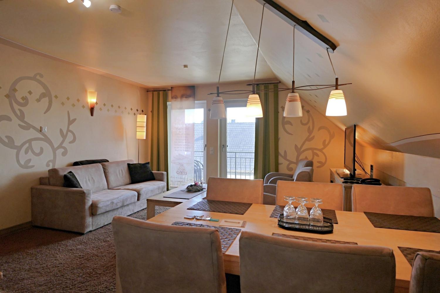 Dieses 4-Sterne Komfort-Appartement direkt im Skigebiet Hoppecketal/Ritzhagen für 4-5(6) Personen mit 2 Schlafzimmern plus Schlafspitzboden ist schmackvoll eingerichtet mit kunstvoll gestalteten Wänden. Jede Wohnung verkörpert einen Stilleben-Maler.