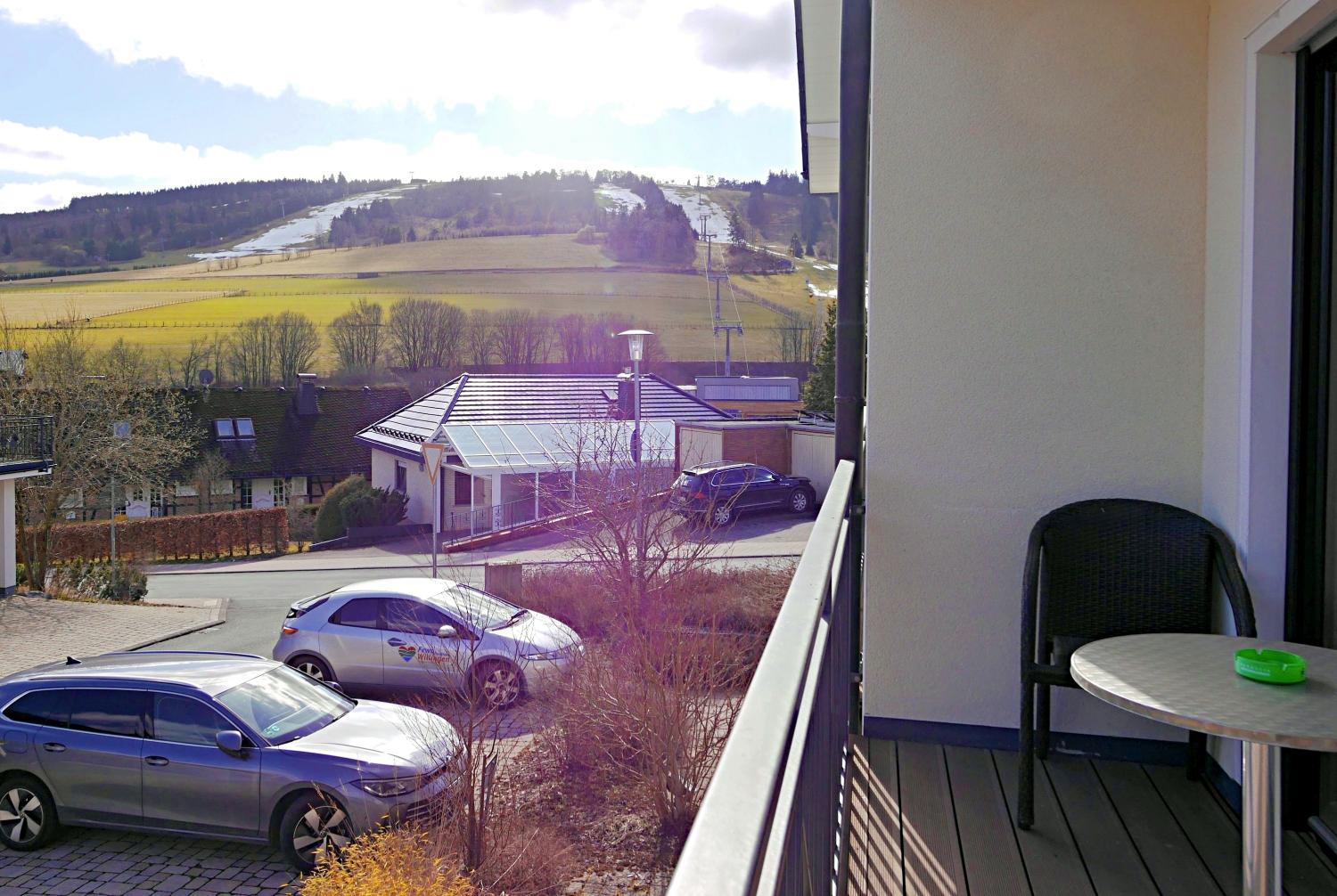 - Balkon mit Blick zu den Ettelsberg-Skipisten und Seilbahn