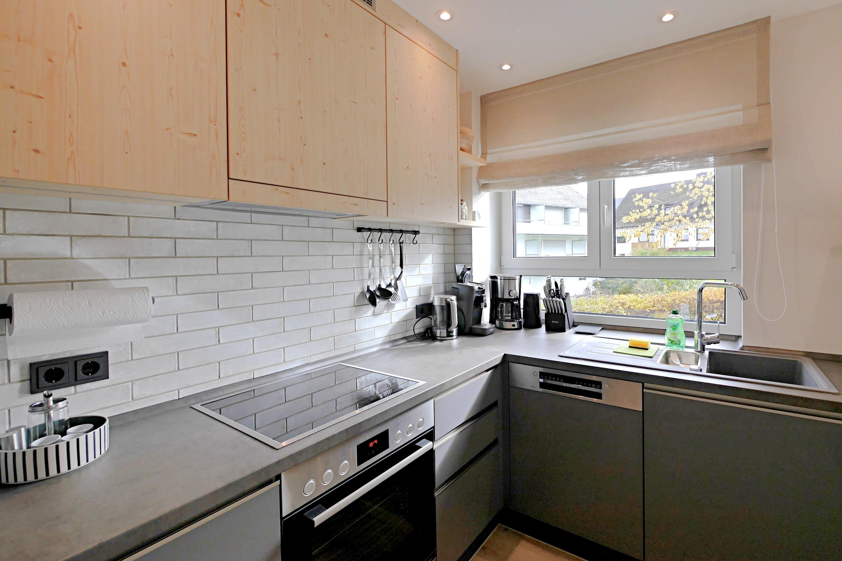 großer Kühlschrank, Backofen, Spülmaschine, Kaffeemaschine, Wasserkocher, Toaster, Mixer,