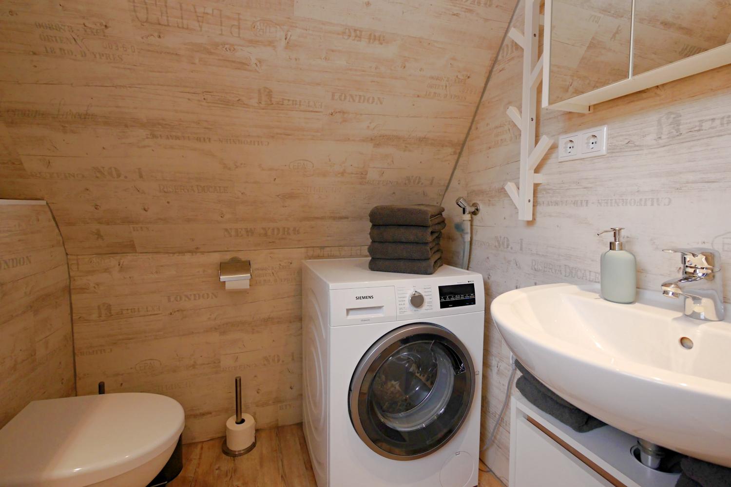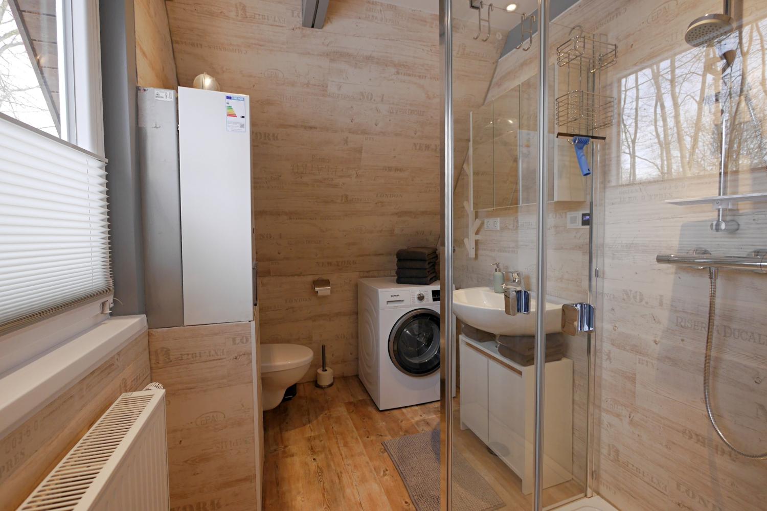 - modernes Duschbad mit Fenster, Waschmaschine und Fön. Auch an ein Badradio ist gedacht!